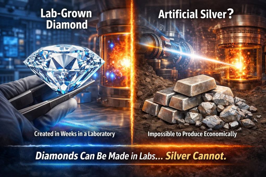 That is why silver still has to be mined from natural deposits in the Earth’s crust. From this perspective, an interesting paradox emerges: diamonds, considered a luxury symbol of rarity, can now be produced in laboratories, while ordinary silver—used in industry and investments—cannot realistically be manufactured artificially.